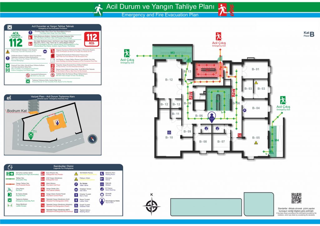 - Kaçış yolları, toplanma yerleri ve bulunması halinde uyarı sistemlerinin de yer aldığı tahliye planı.